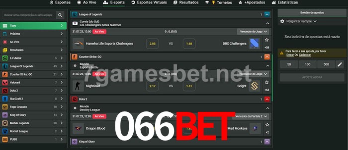 O 066bet oferece uma grande seleção de opções de apostas em e-sports com probabilidades competitivas